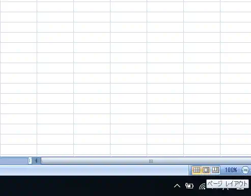 もし 「行の高さ」 「列の幅」 を上のような数値で設定するのではなくて 「1cm」 単位で設定したい場合は、画面右下のほうにある下の画像の3つの四角が並んでいる真ん中にカーソルを合わせると 「ページレイアウト」 という表示がでますのでそちらをクリックしてもらうと1cm単位で設定できます。