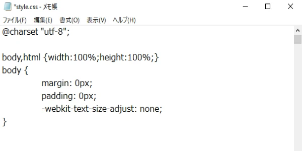 UTF-8(BOM 付き)で保存していたCSSファイル( style.css ファイル )をメモ帳で開いてUTF-8で保存しなおしてサーバーにアップロードする